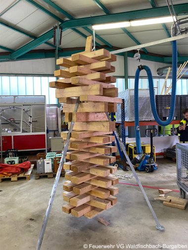 Bei dieser Station wurde ein Turm aus Rüsthölzern auf einer hängenden Plattform gebaut